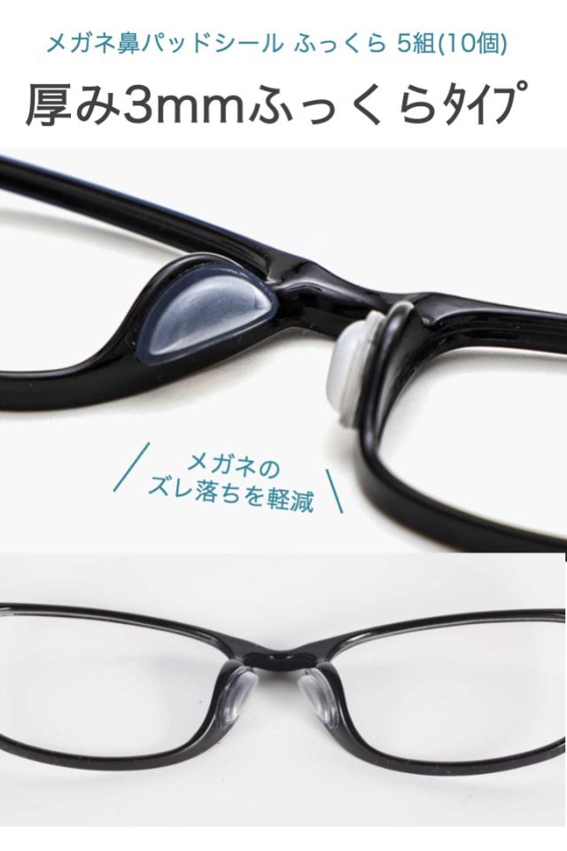 メガネ鼻パッドシール ふっくらタイプ 厚み3mm 透明 5組(10個)セット シリコン 密着 ズレ落ち防止 滑り止め 鼻あて 鼻パッド ノーズパッド 痛み軽減 中空構造 眼鏡 サングラス 貼るだけ フレーム つけ心地 フィット 交換用 予備 接着 メガネ 鼻パッド シール