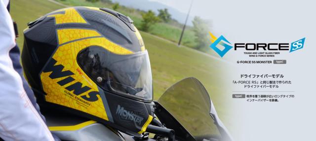 ★送料無料★WINS G-FORCE SS MONSTER 軽くて強いヘルメットを作るためにこだわったプリプレグ素材採用《従来より17mm長くなったインナーバイザーTypeC採用モデル》 バイクオートバイ用/ドライファイバーフルフェイスヘルメット /ウインズ
