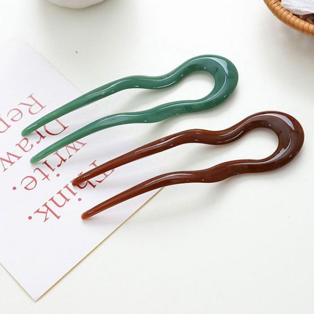 U字コーム かんざし 5色セット ヘアピン おしゃれ ヘアアクセサリー ヘアアレンジ 差すだけ 大人 上品 エレガント カジュアル フェミニン ブラック グリーン ブラウン イエロー レッド 豹 和装 着物 浴衣 和装小物 ヘッドドレス 結婚式 成人式 七五三 レディース