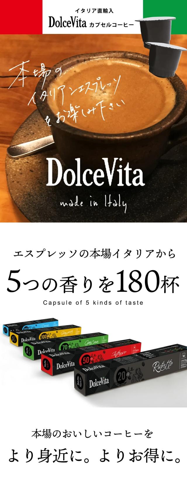 5種180個 イタリア製 ネスプレッソ 互換 カプセル 「DolceVita」コーヒー お試しセット Made in Italy 送料無料
