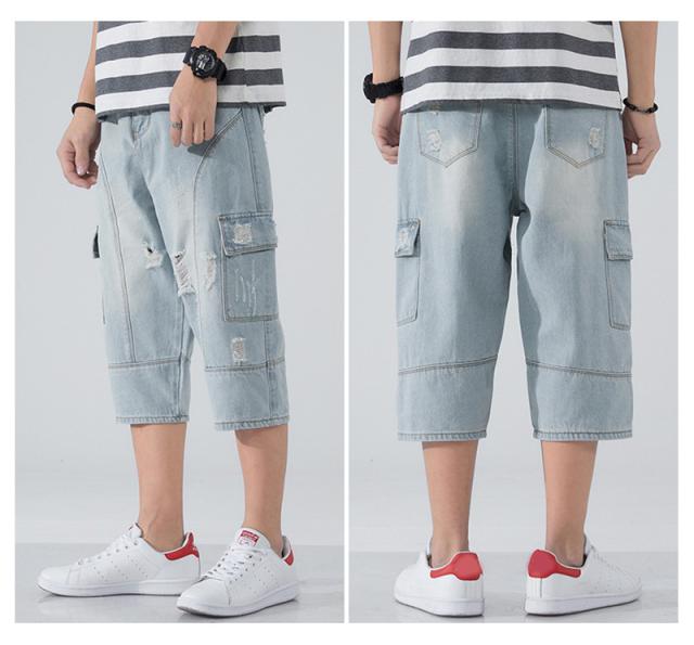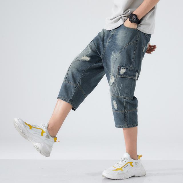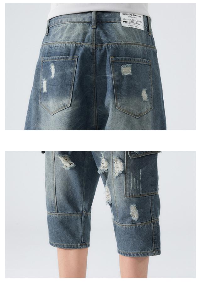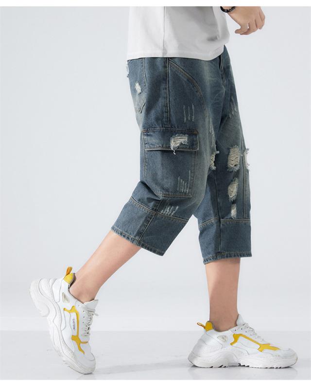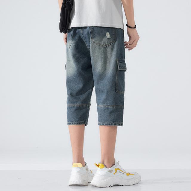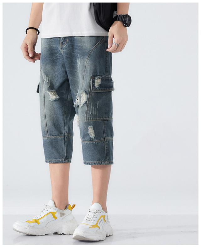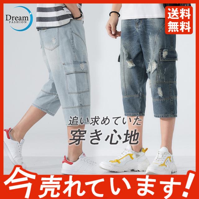 クロップドパンツ メンズ デニムパンツ 7分丈 スキニーパ クロップド ダメージ加工 デニム カジュアル クロップドパンツ ポケッ