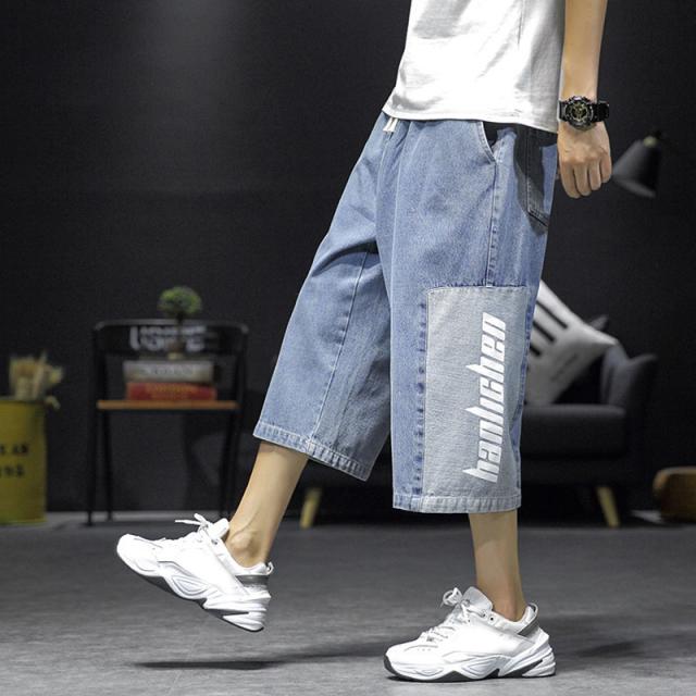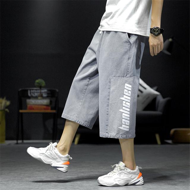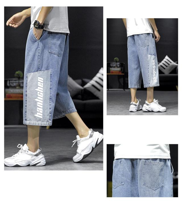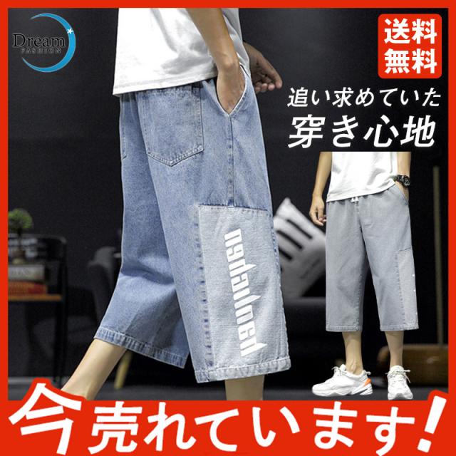 クロップドパンツ メンズ デニムパンツ 7分丈 ショートパンツ クロップド ボトムス デニム 英字 クロップドパンツ ポケット付き