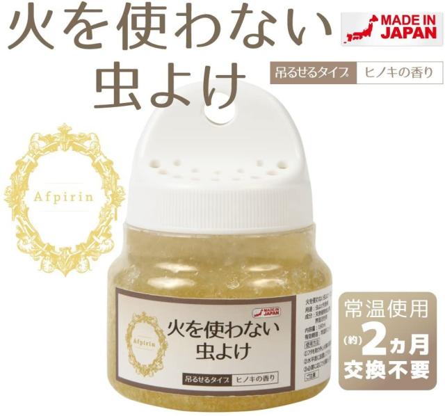 【日本製】火を使わない虫よけ(ヒノキの香り) 160ml 付属品:S字フック【不快害虫対策】 ムカデ 百足 内容量:160ml有効期間:常温約2ヶ月 天然植物抽出物、天然由来香料、食添色素、ゲル化剤 使用前に数回容器をお振り下さい。使用方法1、フタを取り外し付属の蒸散フタを取り付けます。2、水平面に設置して下さい。3、必要に応じて付属のS 字フックを使い、吊り下げてご使用ください。