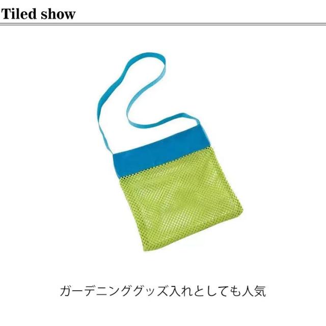 | コンパクトに畳めて持ち運びにも便利。 お買い物のサブバッグにも。 ボールやお砂場グッズなどの外遊びセットもたっぷり収納できます。 帰りながら、ネットから砂や土が落ちるので、一石二鳥。 口が大きく開くのでお子様にも出し入れがしやすいですよ。 ガーデニンググッズ入れとしても人気。 | |