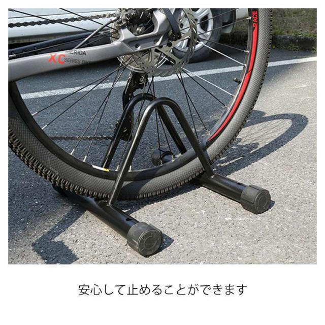 自転車 スタンド 1台 倒れない 室内 屋外 自転車スタンド 自転車ラック 置き場 駐輪 ラック おしゃれ 駐輪場 前輪 後輪 クロスバイク ロードバイク マウンテンバイク 屋内 子供 家庭 店舗 盗難 転倒 防止 固定 穴 黒 ブラック