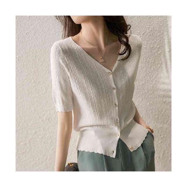 カーディガン トップス レディース 半袖 tシャツ カットソー UVカット 接触冷感 Vネック 紫外線対策 薄手ニット カーディガン 薄手 冷房対策 日焼け防止 上着 おしゃれ 大きいサイズ ナチュラル 無地 オフィス 通勤 夏