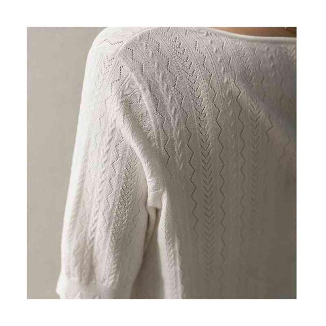 | 接触冷感効果のある糸を使った、シンプルなの半袖カーディガンです。 丈はコーディネートしやすいウエスト丈♪ ボレロは短すぎて苦手という方や、カーディガンだと長すぎてフレアワンピースにはバランスが悪いという時に重宝します。 サラリとした手触りで、ひんやりと心地良い、接触冷感効果のある「レーヨン混ニット糸」を使用。 シャリ感があり、夏にぴったりのニットです。 お洗濯方法は、「手洗い表示」なのでお家で簡単にお手入れできます。 | |