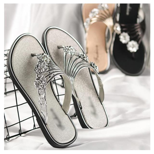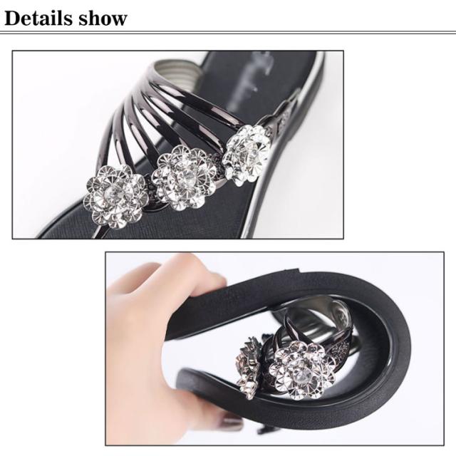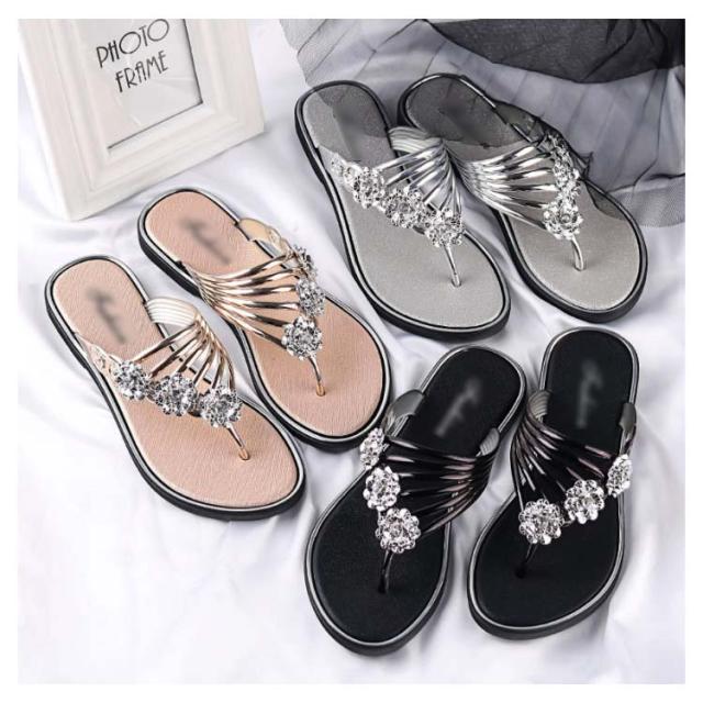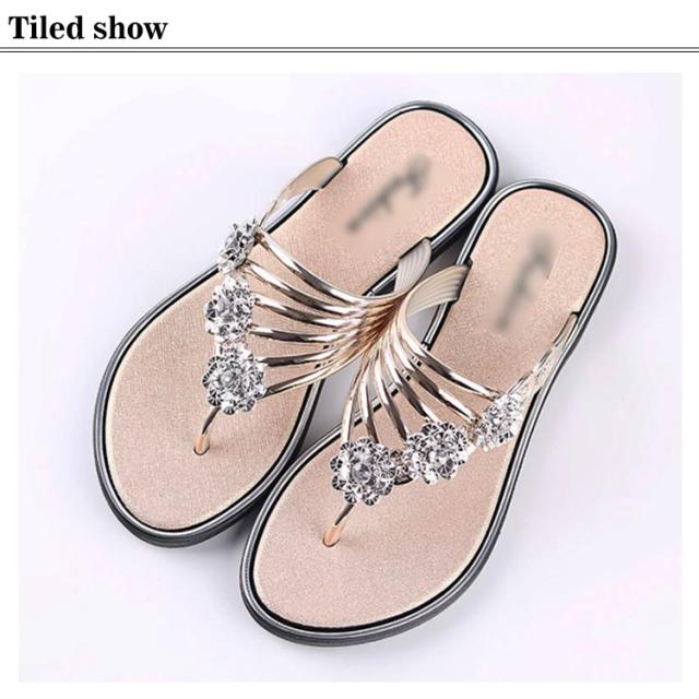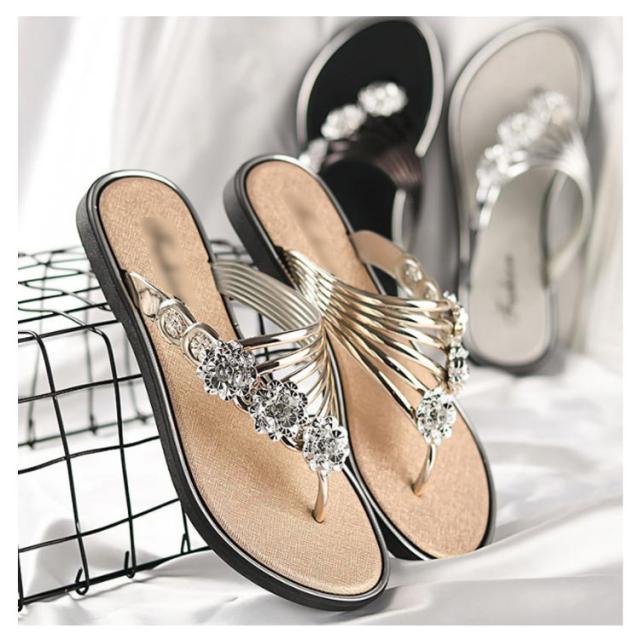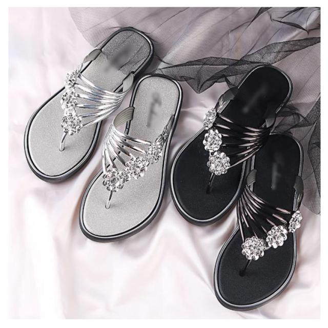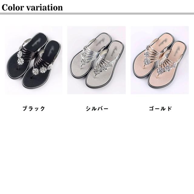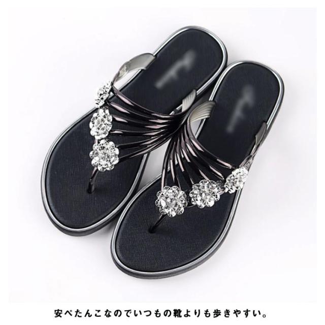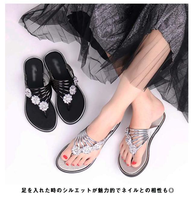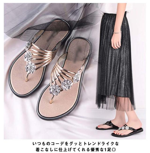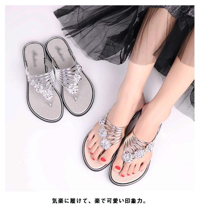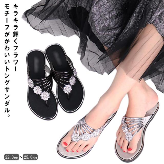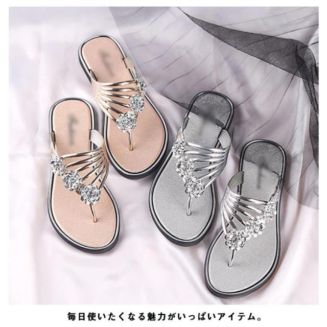 サンダル レディース ビーチサンダル トングサンダル ビジュー付き 夏 スリッパ おしゃれ トング サマーサンダル ローヒール フラット シューズ 靴 涼しげ 爽やか お洒落 キレイめ 華奢見え 華やか シンプル 上品 送料無料