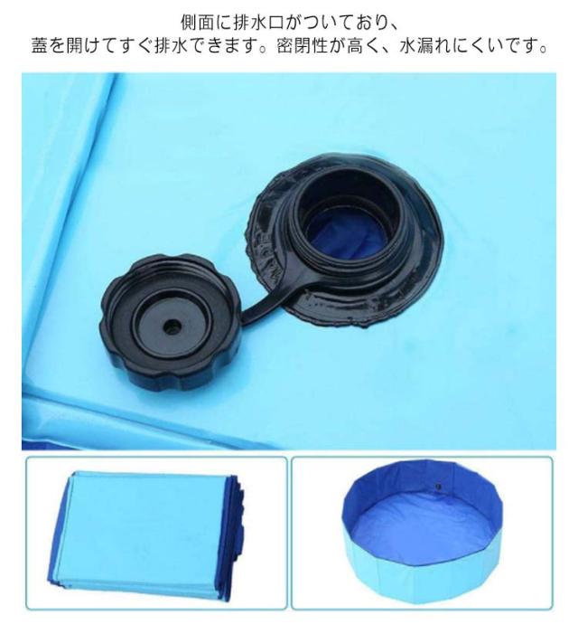 | 使用後、またアウトドアや旅行の際に保管や持ち運びにとても便利な折り畳み式のプールです。 側面に排水口がついており、蓋を開けてすぐ排水できます。密閉性が高く、水漏れにくいです。 表面は環境にやさしいPVC材質を採用して、安全無毒で耐久性も優れます。内部は滑り止めデザインされ、子供やペットをより安全にします。 ペット用プールやお風呂グッズとしてはもちろん、 子供用のプールとしても大活躍! 屋内や旅行、アウトドアなど適用! | |