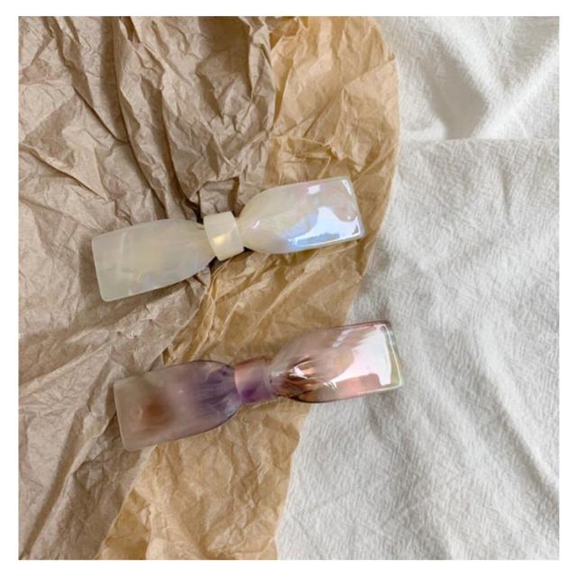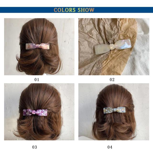 シンプルカラーリボンバレッタ べっ甲風 ドット アクリル ヘアアクセ ヘアアクセサリー 大きめ 小さめ レディース 大人っぽい かわいい おしゃれ プレゼント 送料無料