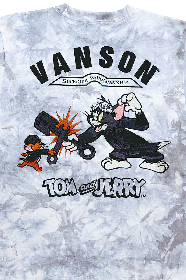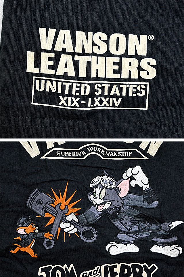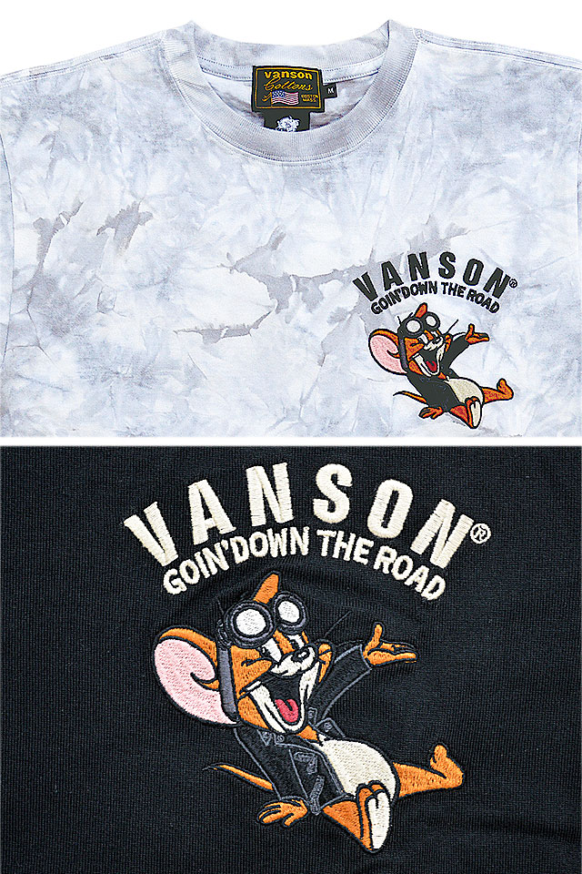 vanson×TOM&JERRYコラボ 天竺半袖Tシャツ vanson TJV-2229 バンソン ヴァンソン トムとジェリー 刺繍