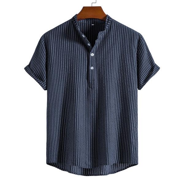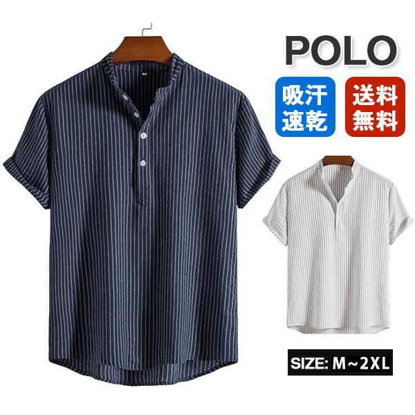 ポロシャツ メンズ 半袖 スポーツ ストライプ 立ち襟 麻 無地 ゴルフシャツ シンプル アメカジ 綿 夏 カジュアル ゆったり
