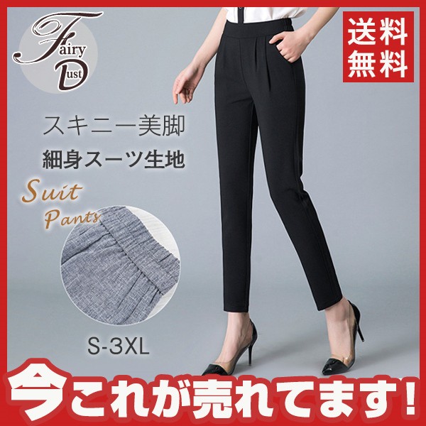 【水曜日まで!10%クーポン配布中】 レディース ビジネスオフィスパンツ チノパン 小さめ 春秋 スーツズボン OL 仕事 ウエストゴム カジュアル通勤スリム スキニー美脚 細身 送料無料