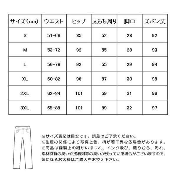 - ウエスト部分が少し細めです。ゴムになっていて履きやすいですが、おしり周りにお肉が付いてるのでSじゃなくMの方が楽に履ける。 他のらいんは細めでもスタイルよく見え気に入りました。もう一枚買おうと思ってます