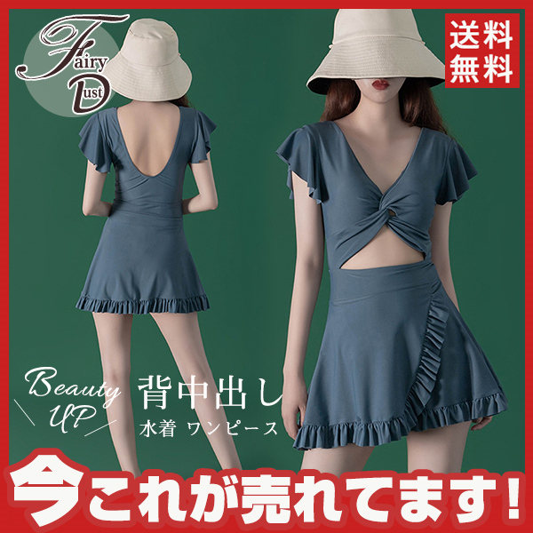 【水曜日まで!10%クーポン配布中】 水着 レディース ワンピース オールインワン タンキニ サロペット UVカット スリム フレア 半袖 ビキニ スイミング フィットネス フリル