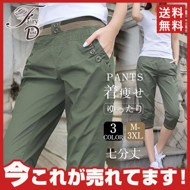 【水曜日まで!10%クーポン配布中】 ワイドパンツ レディース 七分丈 ボトムス サルエル風 ストレッチ 体型カバー ポケットフィットネス 美脚 ダンス チノパン カジュアル ゆったり