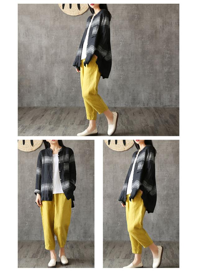 【水曜日まで!10%クーポン配布中】 サルエルパンツ レディース 春夏秋 カジュアルパンツ 七分丈 ズボン ボトムス ボーダー柄 綿麻パンツ 通気性よい ワイドパンツ リネン ゆったり