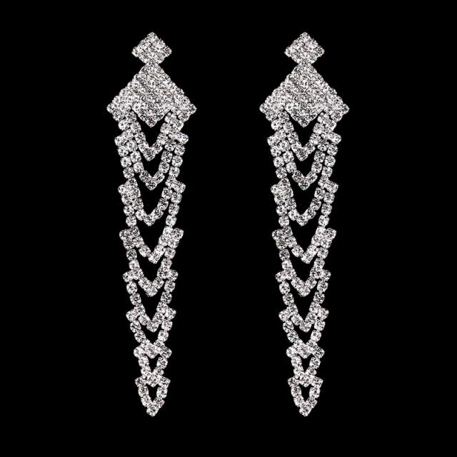 スクエアロングアロークリスタルウエディングジュエリーピアス 1ペア シルバー 結婚式 新婦 披露宴 花嫁 衣装 長い 揺れる ジルコニア ラインストーン レディース プレゼント 20G 20ゲージ パーティー 女性 ドレス 舞台 ブライダル コスプレ 四角形 貸衣装 フォトスタジオ