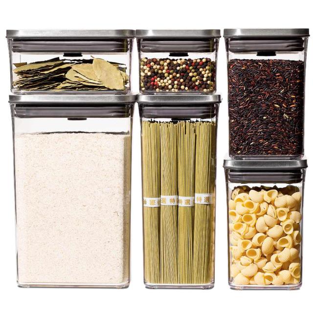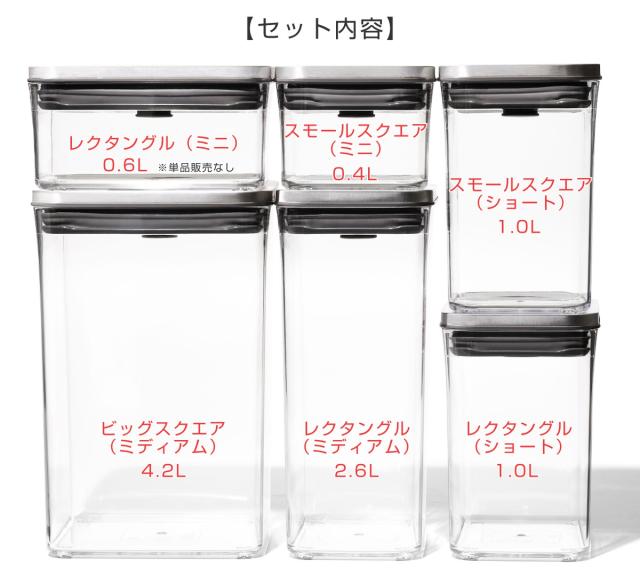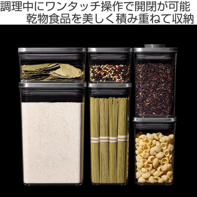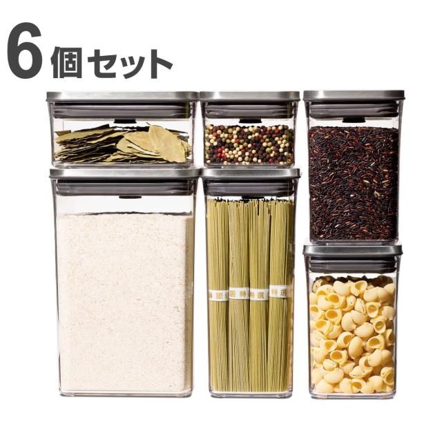 OXO ステンレスポップコンテナ 6ピースセット ( オクソー 保存容器 ステンレス プラスチック 密閉 密閉容器 密閉保存容器 クリア 透明 ワンプッシュ開閉 保存 容器 ストッカー コンテナ スタッキング おしゃれ )