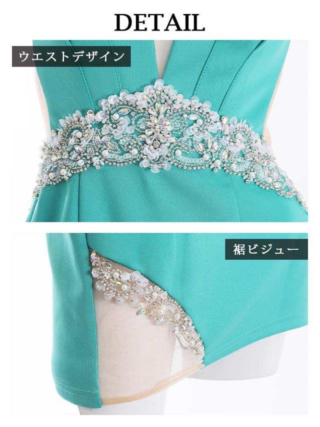 ☆ハイウエストに施されたビジューとバストのタックデザインが引き締まったくびれ魅せと脚長効果が期待できる女性らしいシルエットが魅力的なタイトミニドレスです♪