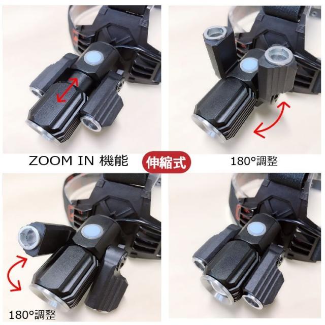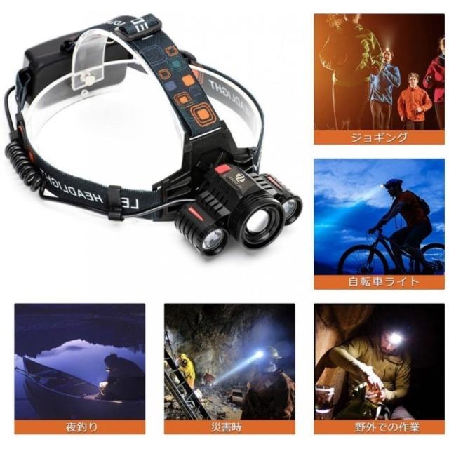 ヘッドライトで頭に装着するため両手が自由に使えます。ヘルメットライト替わり、ジョギング、夜釣り、ランニング、狩猟(狩り)、射撃、サイクリング、登山、洞窟探検&探索