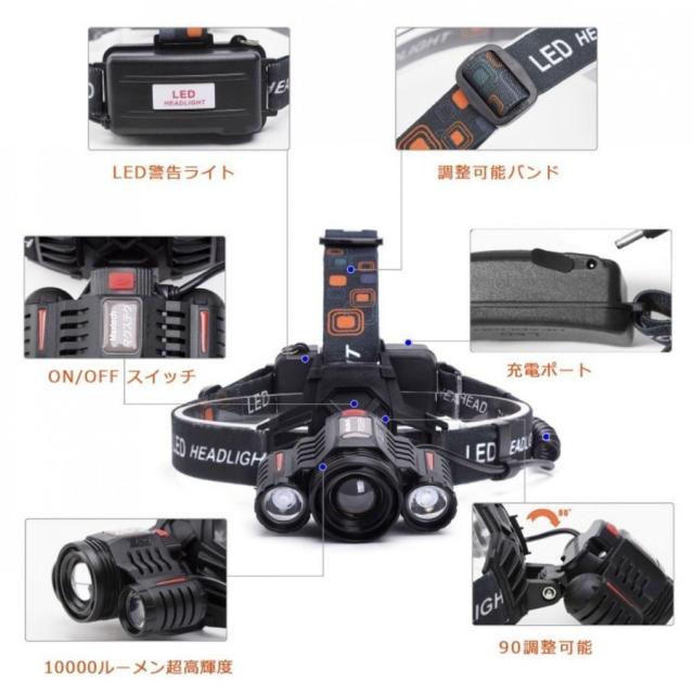 当日発送 LEDヘッドライト 最強ルーメン 超高輝度 10000ルーメン 充電式 4段階の点灯モード 登山 夜釣り アウトドア作業 SOS PSE認証済み