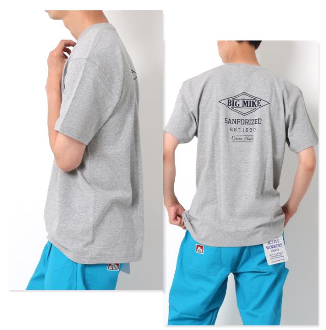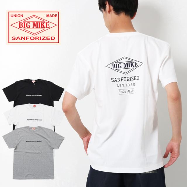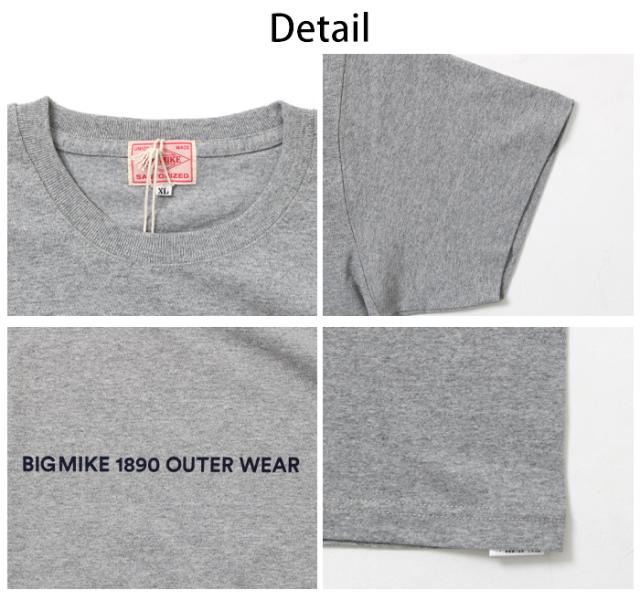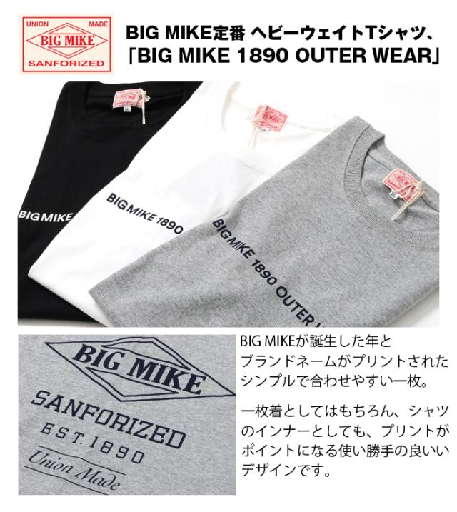 BIGMIKE ビッグマイク tシャツ カットソー トップス プリントt 綿100 コットン 定番 おしゃれ メンズ 男性 大人 アメカジ ストリート アウトドア きれいめ カジュアル ブランド シンプル 丈夫 頑丈 タフ プレゼント ホワイト グレー ブラック