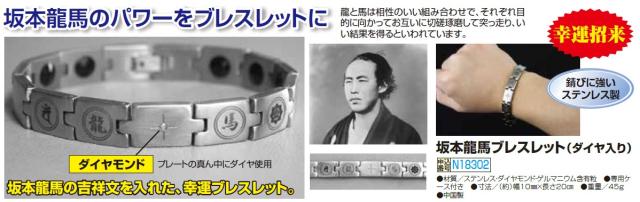 坂本龍馬ブレスレット(ダイヤ入り) 腕輪 ブレスレット メンズ 紳士 シニア ステンレスブレス ゲルマニウム含有粒 開運グッズ シニアファッション 50代 60代 70代 80代