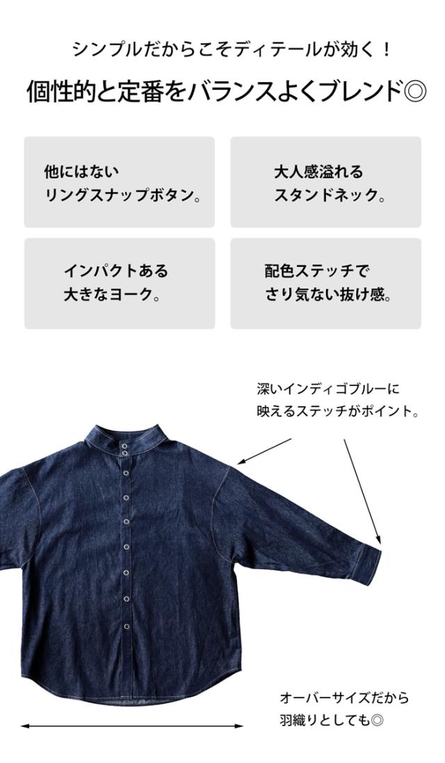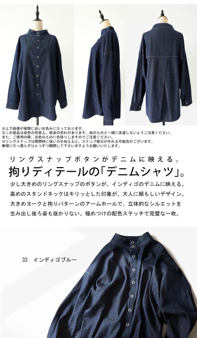 【検索ワード】リングスナップ デニムシャツ シャツ レディース トップス 長袖 綿100 デニム 羽織り デニムジャケット ハイネック スタンドネック スナップボタン リングドット タック 切替え 立体感 配色ステッチ 綿 コットン ライトアウター 軽アウター カバーオール ゆったり オーバーサイズ 大きいサイズ ユニセックス antiqua treecafe アンティカ ツリーカフェ 大人 おしゃれ 10代 20代 30代 40代 50代 60代 春 秋 冬 お洒落 カジュアル かわいい かっこいい あんてぃか