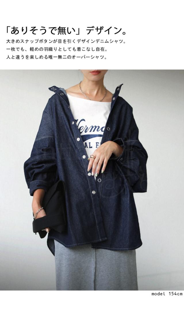 ポイント10%対象!29日20時〜3日10時 リングスナップ デニムシャツ レディース トップス 綿 送料無料・再入荷 メール便不可