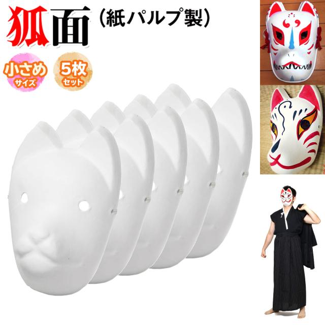 狐面 お面 狐 仮面 マスク コスプレ 無地 白 おめん ペイント 飾り お祭り 紙パルプ製 小サイズ 5枚セット