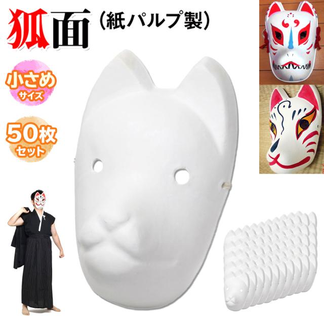 狐面 お面 狐 仮面 マスク コスプレ 無地 白 おめん ペイント 飾り お祭り 紙パルプ製 小サイズ 50枚セット