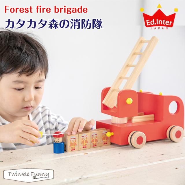 エドインター 森の遊び道具/カタカタ森の消防隊 木製玩具 知育玩具 天然木