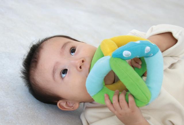 にぎる、振る、転がす、遊びながら運動機能を促します。