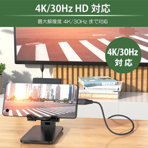 DisplayPort Alternate Mode対応のType-Cポートを搭載機器(パソコンやスマホなど)の画面をHDMI接続したテレビに出力するケーブルです。