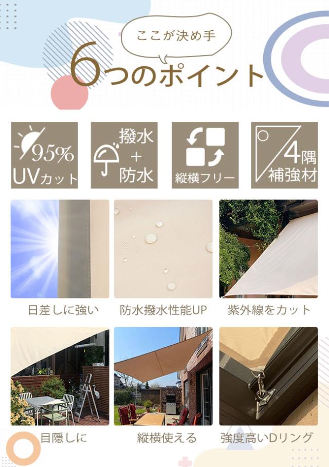 サンシェード ベランダ 日よけ 日除け シェード 庭 UVカット マンション ベランダ 目隠し 省エネ シート無地 サンシエイド オーニング ウッドデッキ バルコニー 大型対応 室外機 直射日光を抑える