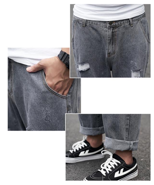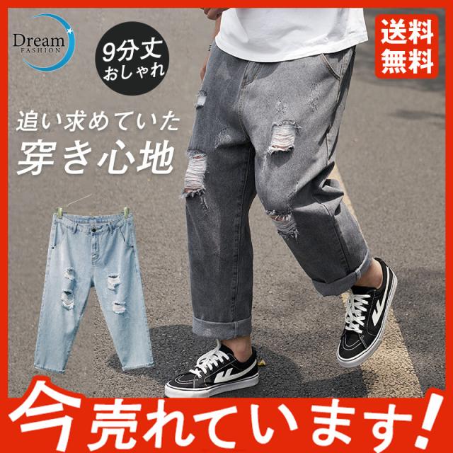 クロップドパンツ メンズ デニムパンツ 9分丈 ストレートパンツ クロップド ボトムス ゆったり カジュアル クロップドパンツ ポ
