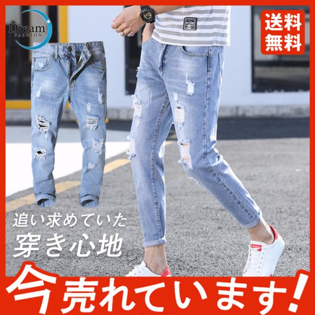 クロップドパンツ メンズ デニムパンツ 9分丈 ストリート クロップド ボトムス アメカジ カジュアル クロップドパンツ ポケット
