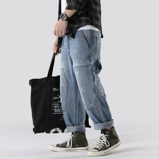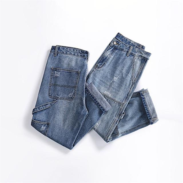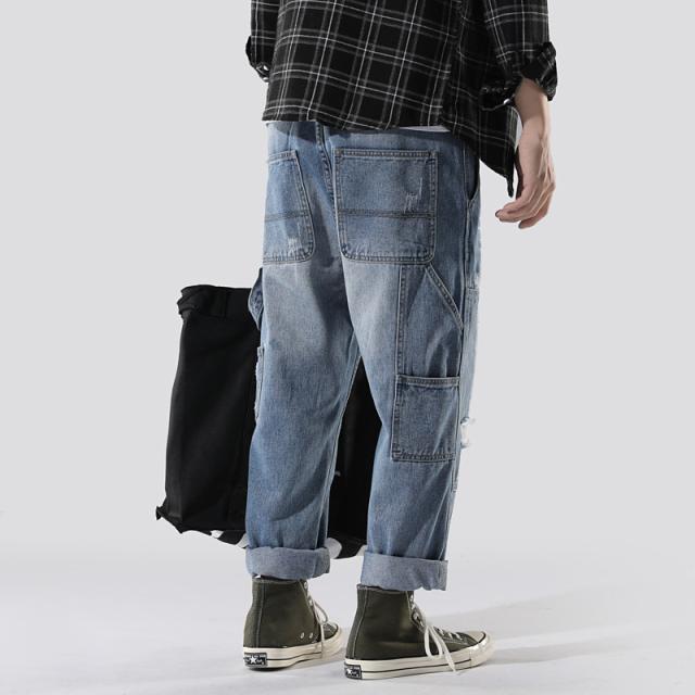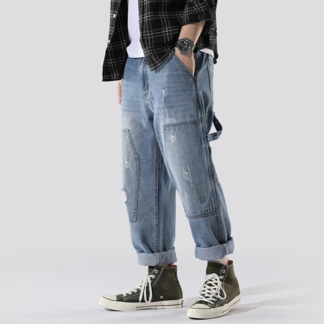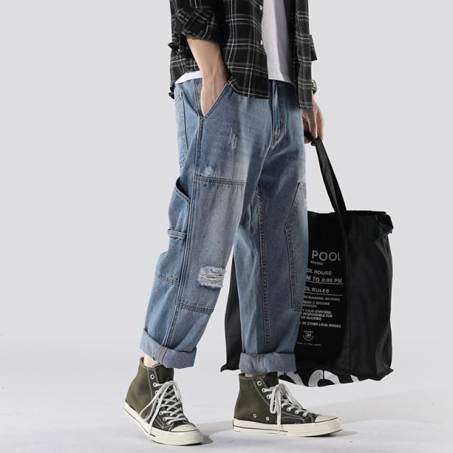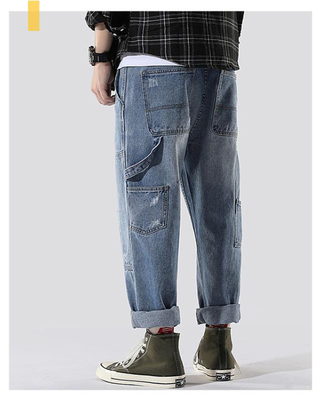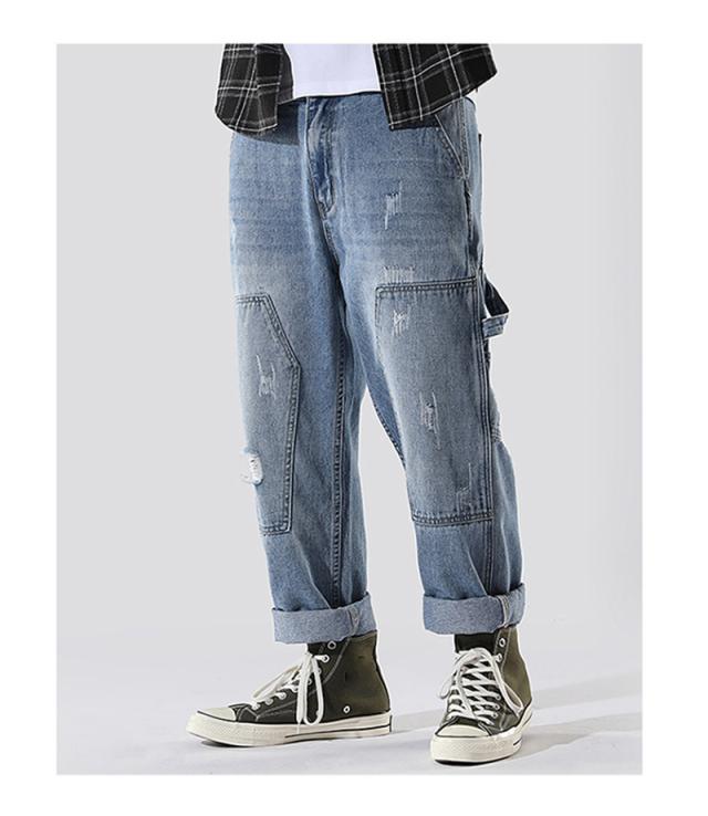 クロップドパンツ メンズ デニムパンツ 9分丈 アメカジ ストレートパンツ クロップド ゆったり カジュアル クロップドパンツ ポ