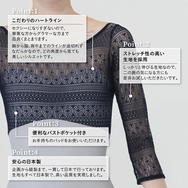 日本製 ナタリー 7分袖レオタード バレエ レオタード 大人 ジュニア バストポケット付き 7分袖 背中あき レース おしゃれ レッスン着