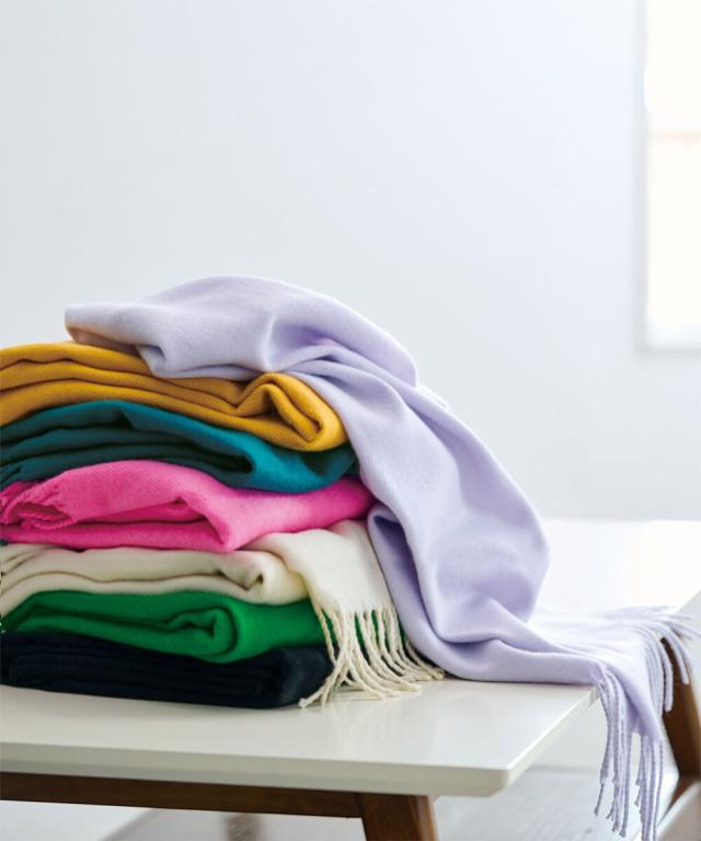 ふんわり柔らか愛され大判ストールしっとり柔らかな肌ざわりのストール。大判サイズだから、ひざ掛けやブランケット代わりにも重宝。色違いで欲しくなる7色展開。