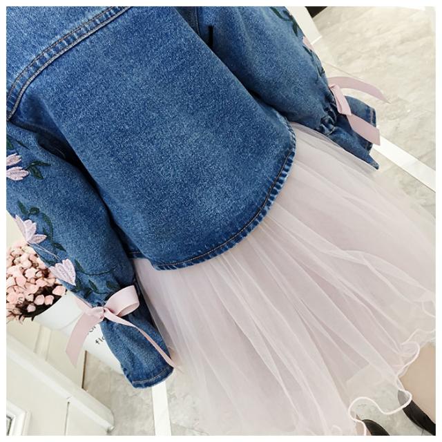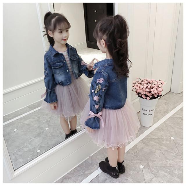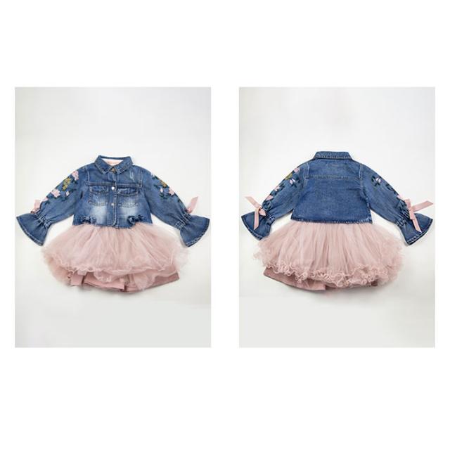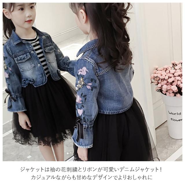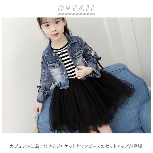 子供 服 女の子 セットアップ 通販 ジャケット フレア スカート 2点セット 上下セット セット チュールワンピース ワンピース デニム デニムジャケット ドレス 長袖 女の子 お嬢様