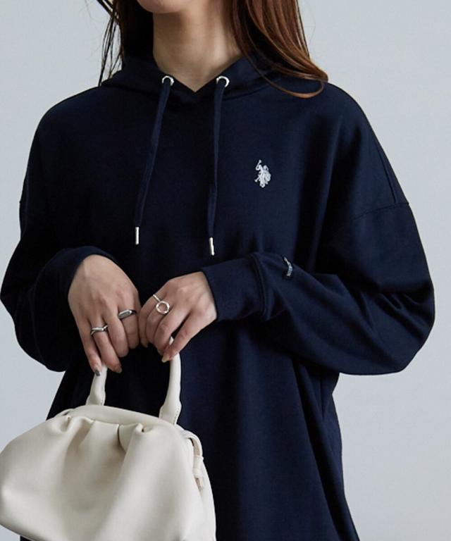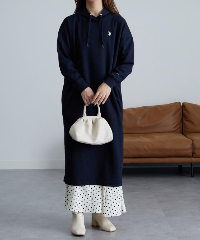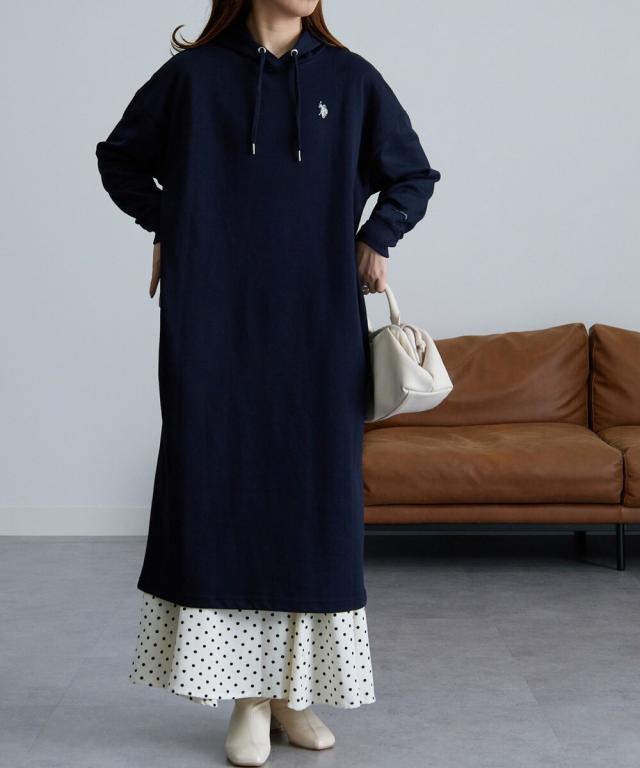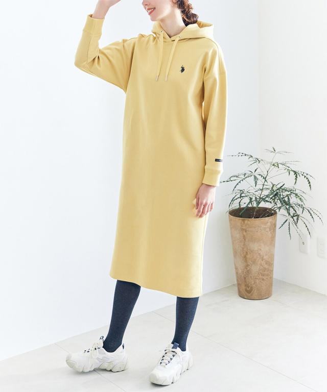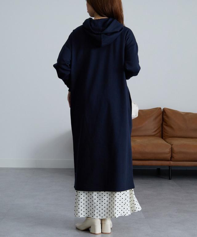 伸縮性があり、もちもちっとしたダンボール素材のフードワンピ。便利なポケット付きデザイン。一枚で着るのはもちろん、タイツやレギンスと重ねたり、デニムなどパンツスタイルに