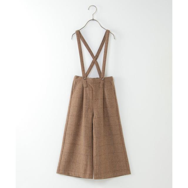 さりげない配色が大人っぽい、ヘリンボン×チェックのキッズサロペット。