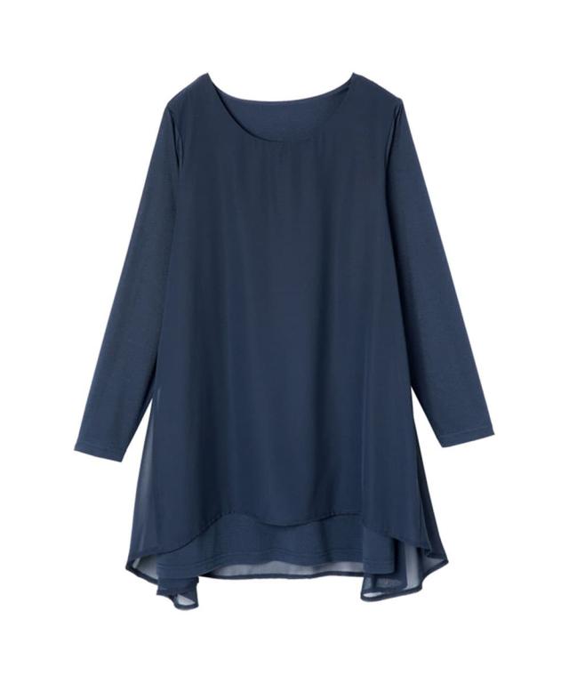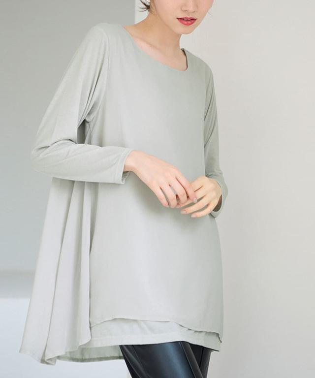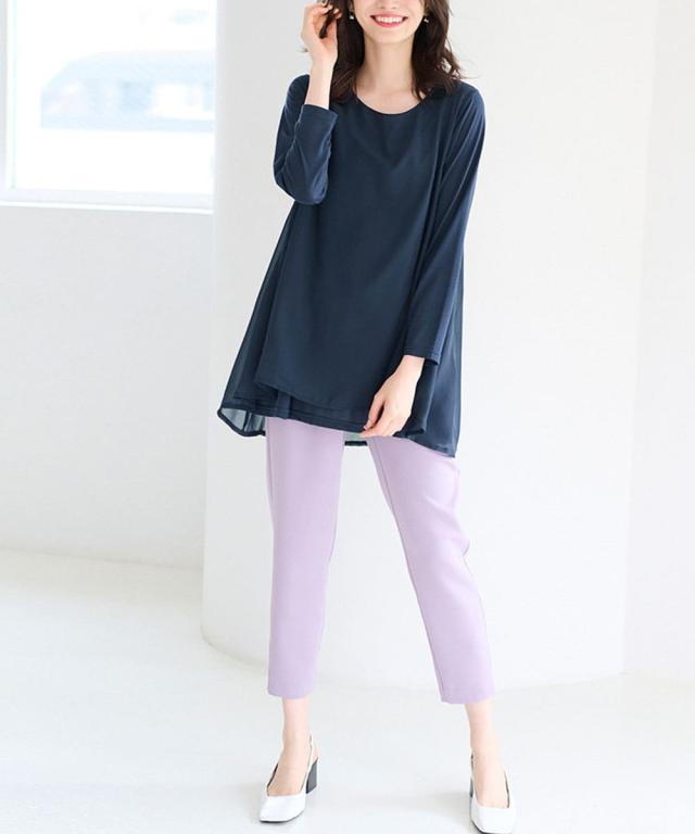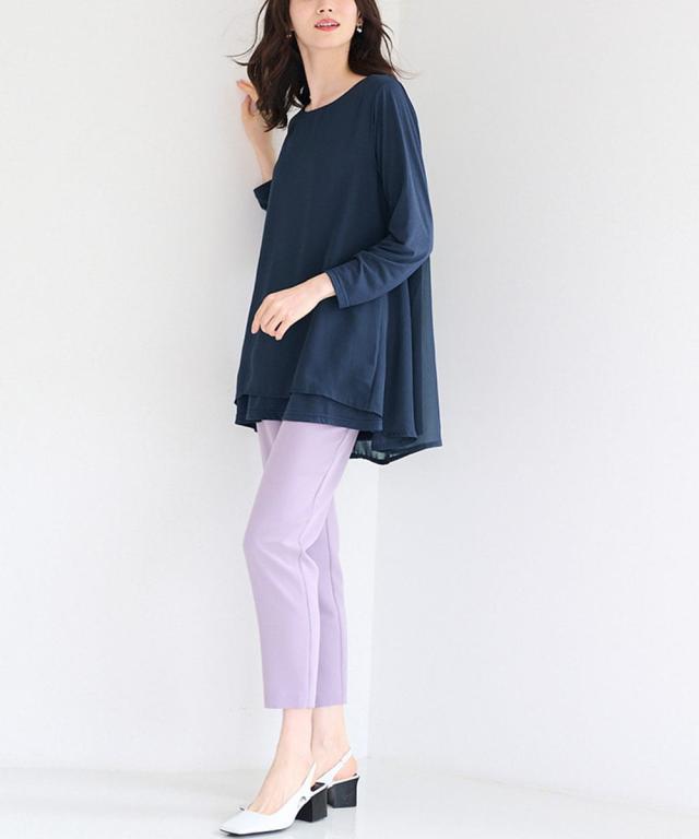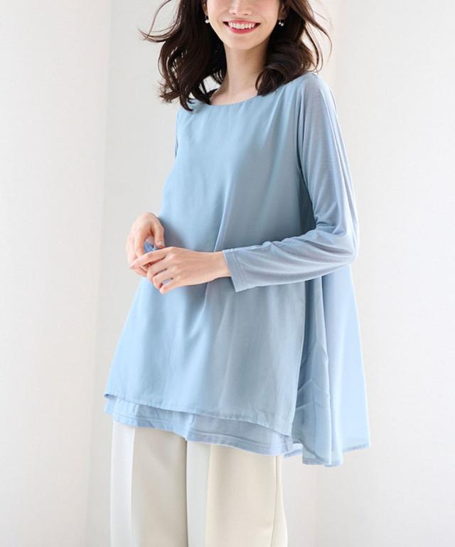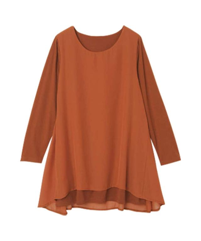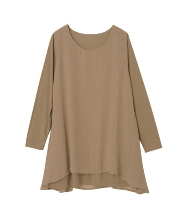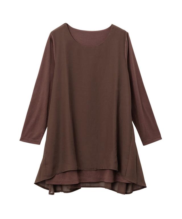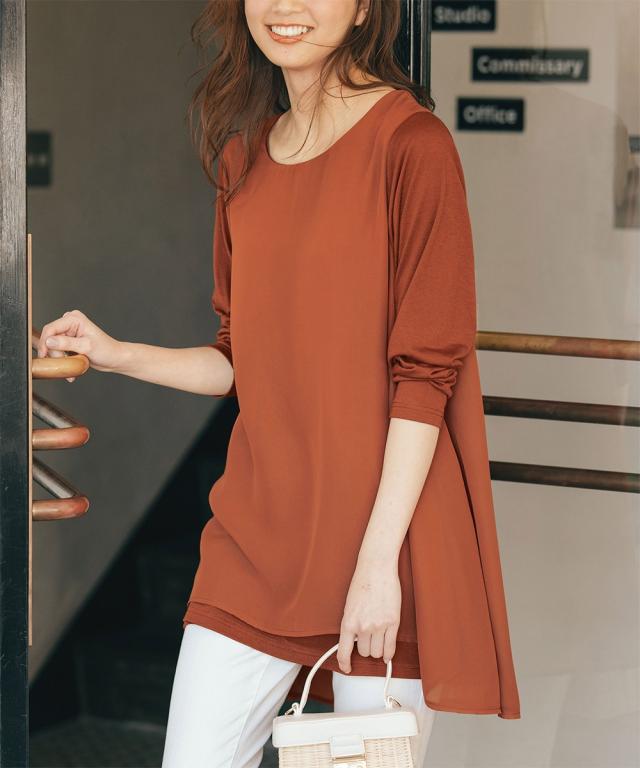 人気商品に『裏微起毛』バージョンが登場!裏微起毛のカットソーにシフォンを重ねた異素材使いのチュニック。ラクな着心地ながら、ふんわりとした揺れ感が女らしさを演出。