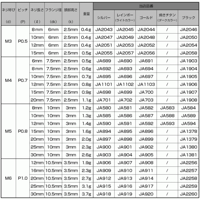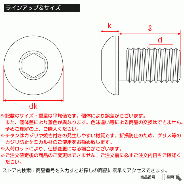 ※チタンはカジリや焼き付きの発生しやすい材質です。折損防止のため、グリス等のカジリ防止ケミカル材のご使用をお勧め致します。