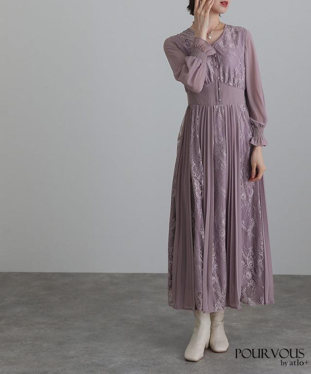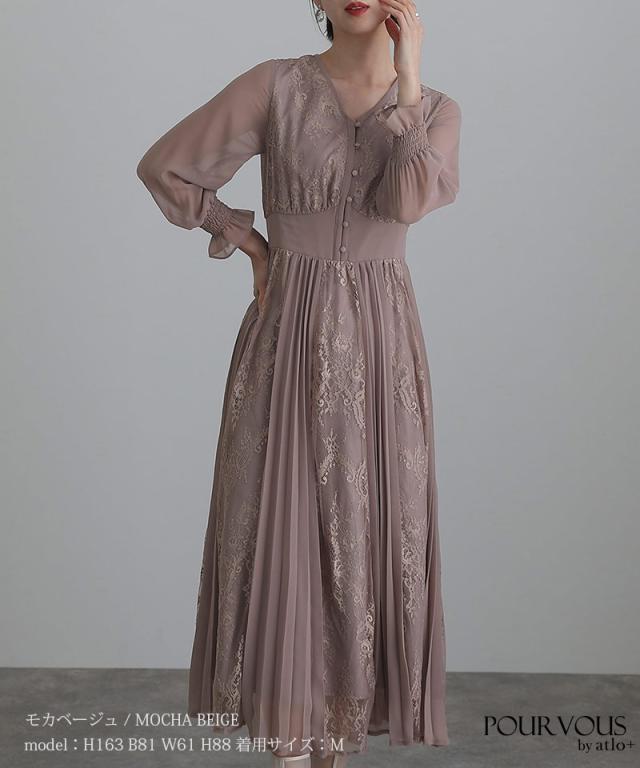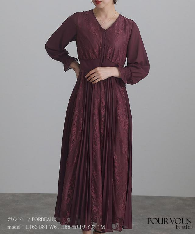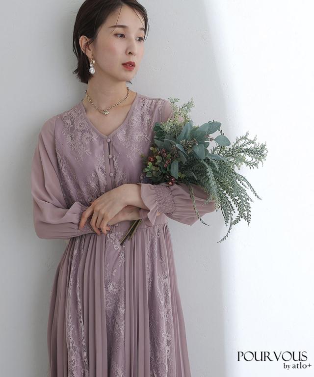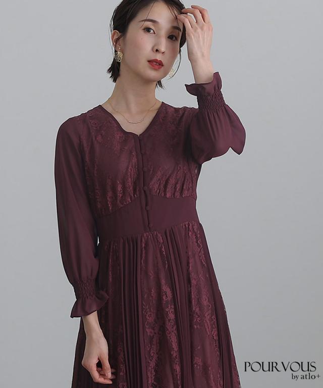 レース×シフォンプリーツワンピース【239221638】20代・30代・40代・54代長袖・膝丈・セットアップ・スカート・体型カバー・ジャケット・テーラード・スーツ・大きいサイズなど・即日発送・送料無料結婚式・婚活・披露宴・顔合わせ・二次会・同窓会・お呼ばれ・食事会・謝恩会・親族・七五三・お宮参り・冠婚葬祭・弔事・女子会・デート・入学式・卒業式・入園式・卒園式・ママ・マタニティー・セレモニー・セレブ・パーティー