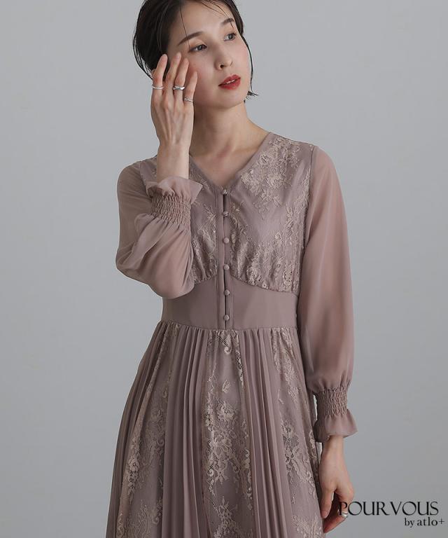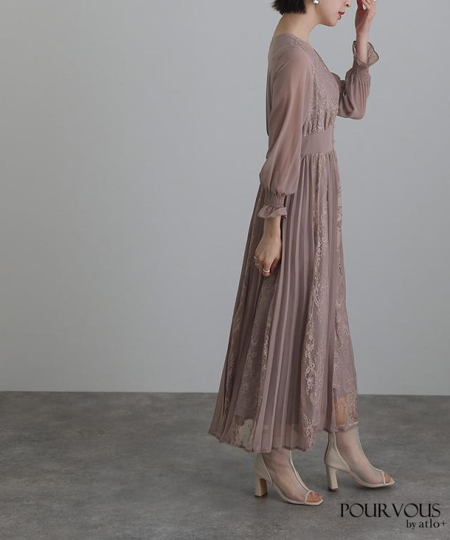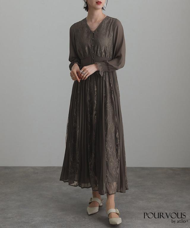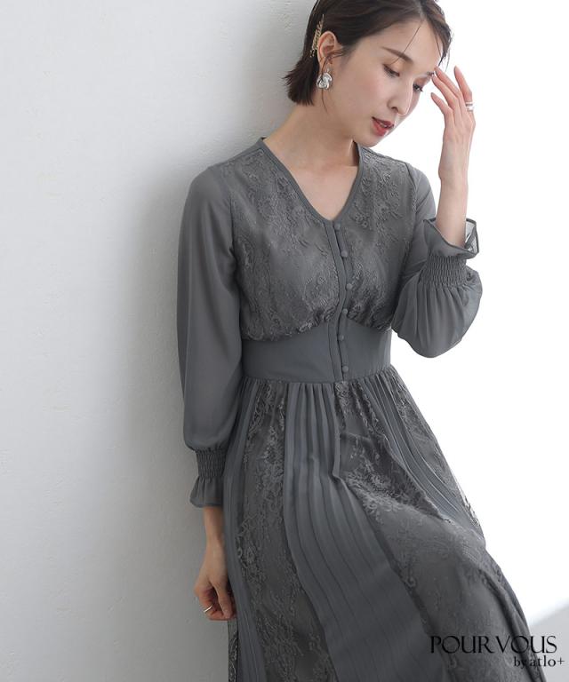 レース×シフォンプリーツワンピース/239221638