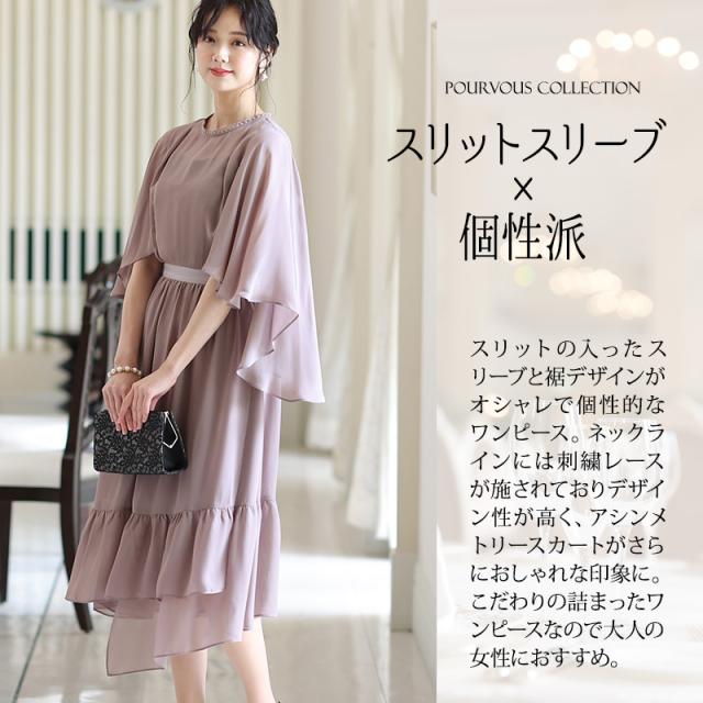 スリットの入ったスリーブと裾デザインがオシャレで個性的なワンピース。