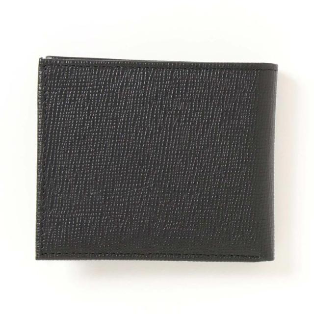 上品な凹凸のエンボス加工を施しフロントにロゴプレートをデザインした落ち着きのある2つ折り財布です。